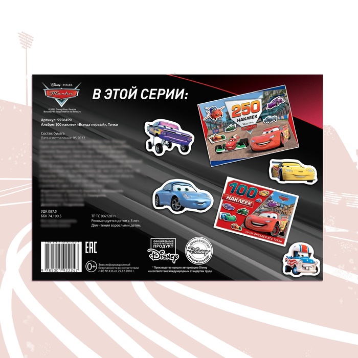 Альбом с наклейками «Всегда первый» — это яркий набор из 100 стикеров для детей от 3 лет, которые любят мультфильм «Тачки». Мягкая обложка и компактный формат делают его удобным для использования дома, в детском саду или на прогулке.