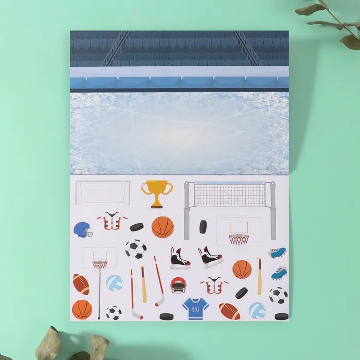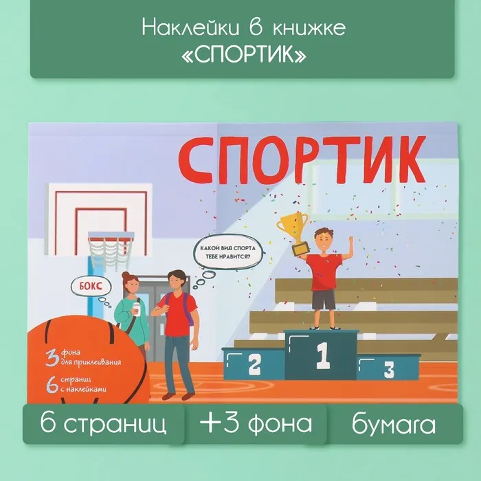 Наклейки в книжке "Спортик" + 3 фона 20,7х14,2 см — Характеристики