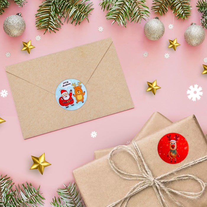 Наклейки в рулоне «Дедушка Мороз», 500 шт., 3.8×3.8 см — Характеристики