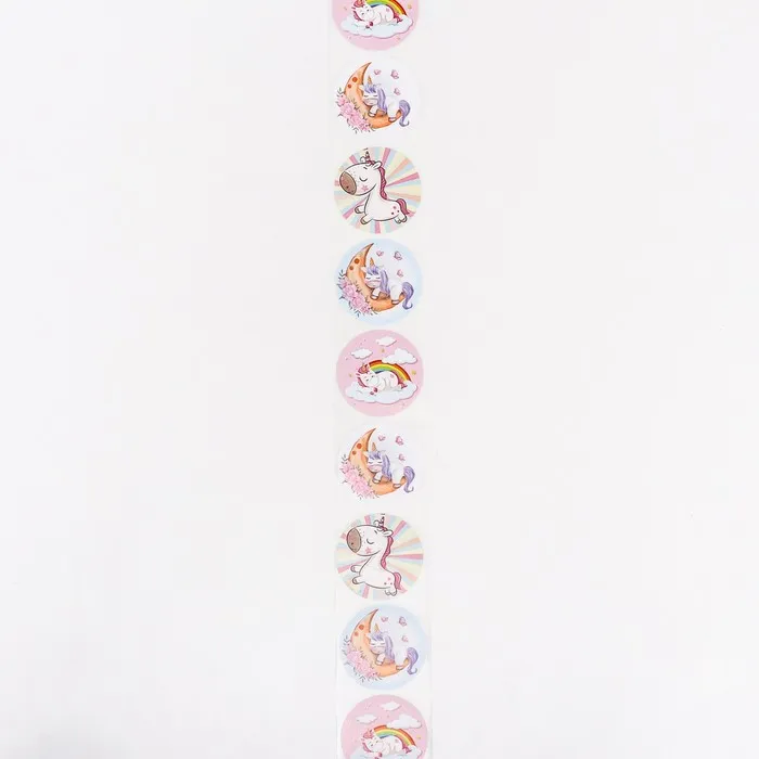 Наклейки в рулоне «Единорожки»,500 шт.,3.8×3.8 см — Характеристики