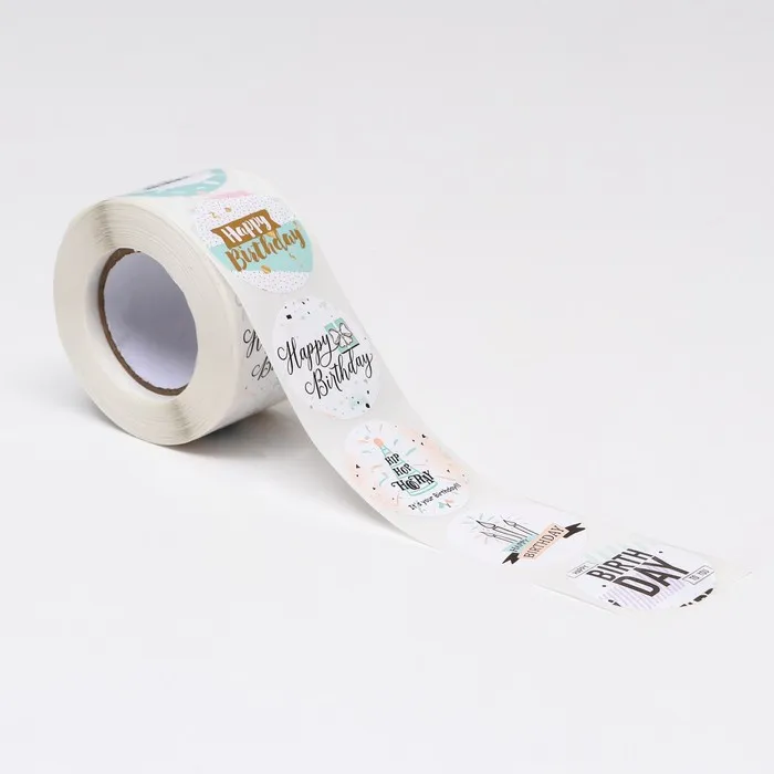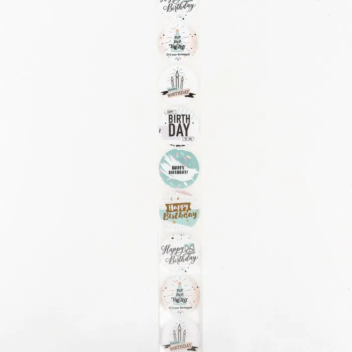 Наклейки в рулоне Happy birthday,500 шт.,3.8×3.8 см — Характеристики