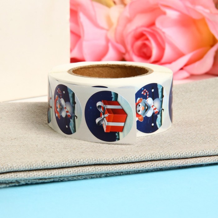 Наклейки в рулоне "Рождество", 500 шт, 2,5 х 2,5 см