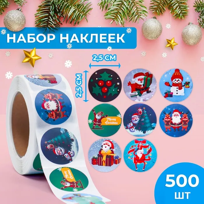 Наклейки в рулоне "Зимние забавы", 500 шт, 2,5 х 2,5 см — Характеристики