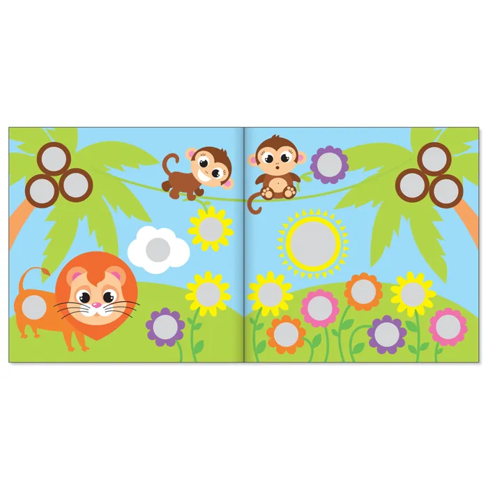 Развивающие наклейки-кружочки пригодятся при обучении малышей важным навыкам. Книга «Весёлые кружочки. Дикие животные» направлена на тренировку цветовосприятия, пространственного мышления и запоминание названия цветов и понятий «большой — маленький».