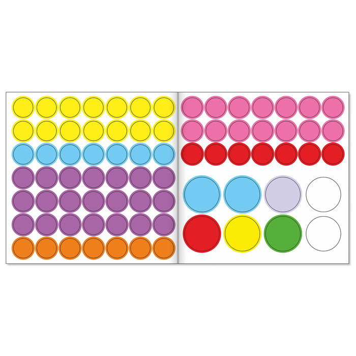 - Крупные кружочки удобно держать и отклеивать малышам, которые ещё только осваивают этот вид творчества.