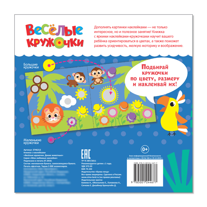 Наклейки «Весёлые кружочки. Дикие животные», 12 стр. — Характеристики