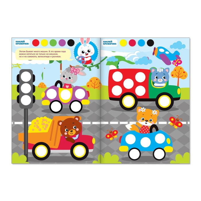 Развивающие наклейки-кружочки пригодятся при обучении малышей важным навыкам. Книга «Весёлые кружочки. Летние истории» направлена на тренировку цветовосприятия, пространственного мышления и запоминание названия цветов.