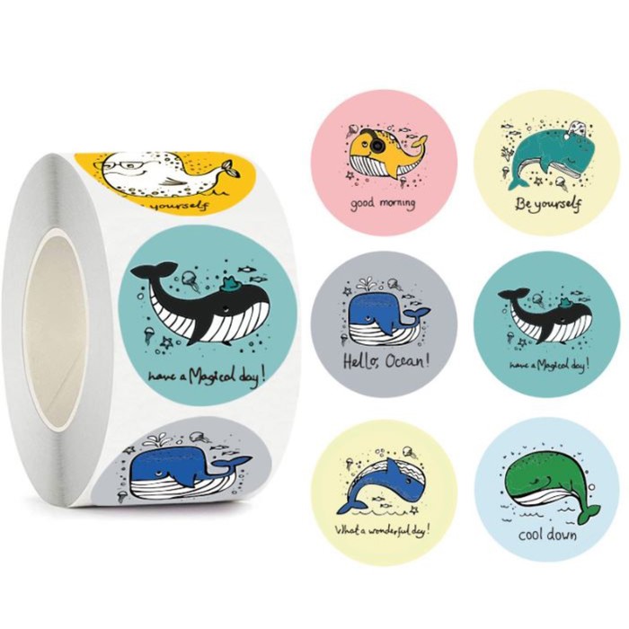 Наклейка бумага «Киты», d=2.5 см, 500 шт. в рулоне, 3×6.5×6.5 см