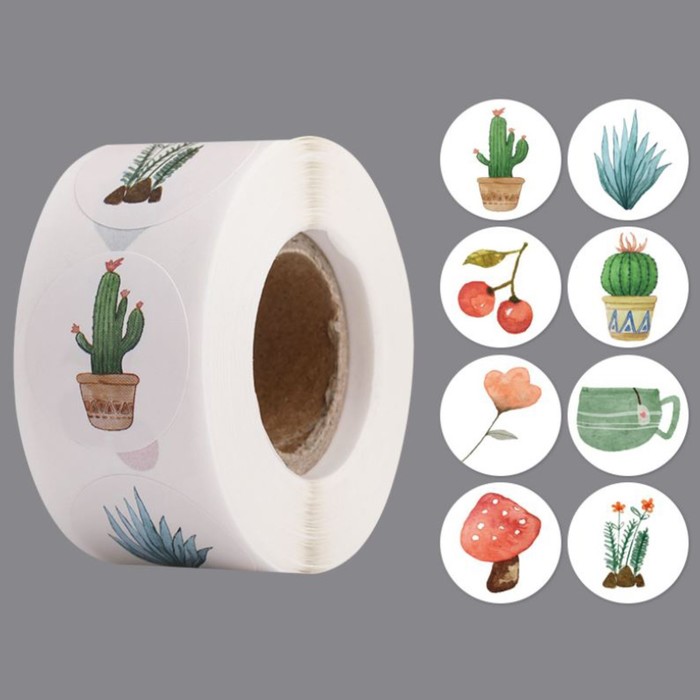 Наклейка бумага «Марки. Кактусы», 3×3 см, 200 шт. в рулоне
