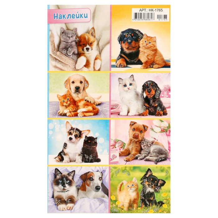 Декоративные наклейки «Котята и щенки», 16×9.7 см