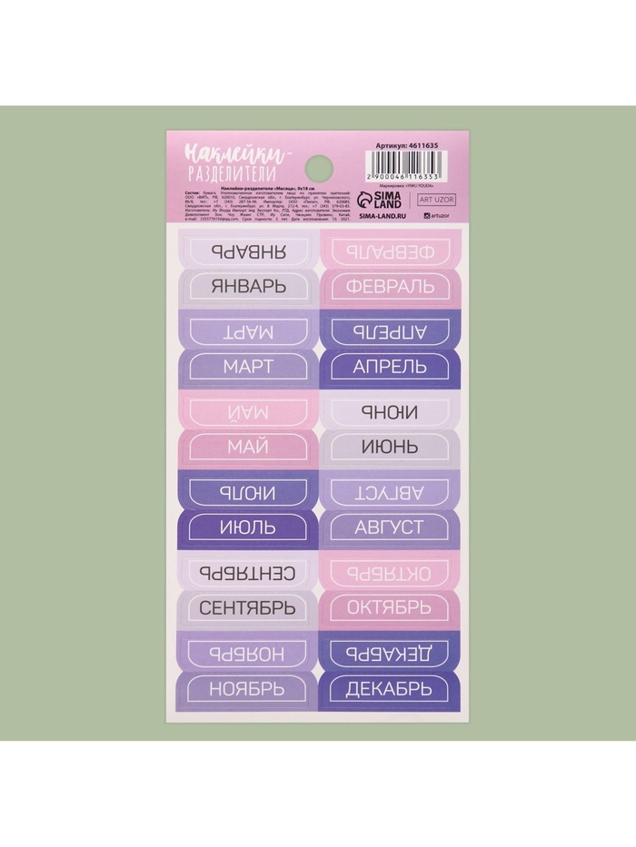 Наклейки-закладки для ежедневника «Месяца», 9 х 18 см — Характеристики