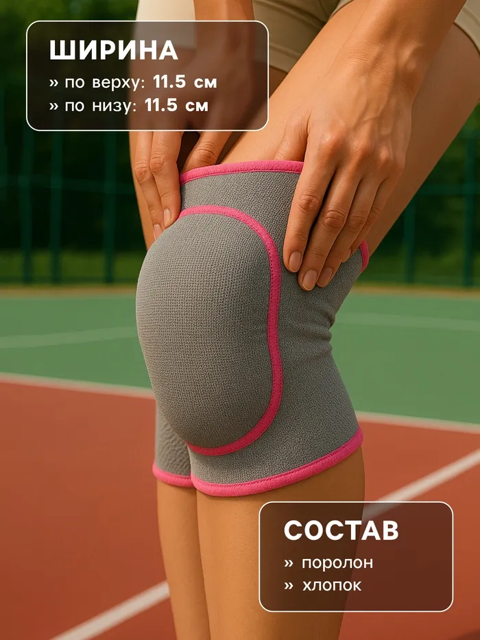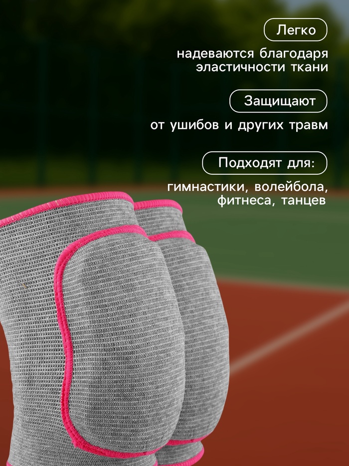 Наколенники защищают спортсмена от ушибов и других травм. Они легко надеваются благодаря эластичности ткани. В комплект входят две штуки.