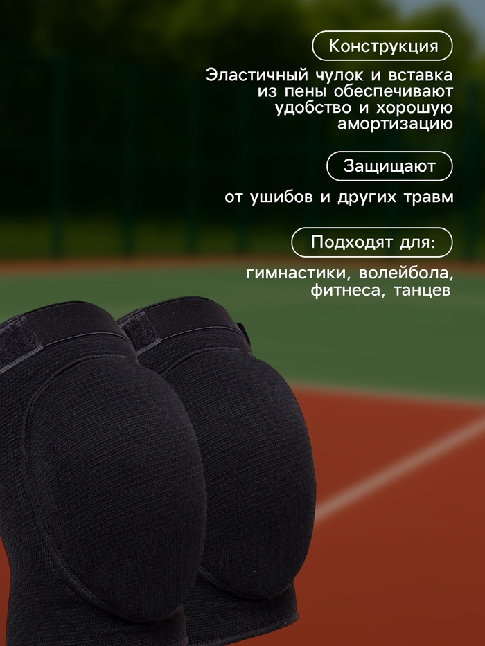 Наколенники применяется во время занятий спортом для защиты сустава от ударов. Изделие имеет традиционную классическую конструкцию: эластичный чулок и вставка из пены, что обеспечивает удобство и хорошую амортизацию. В комплект входят две штуки.
