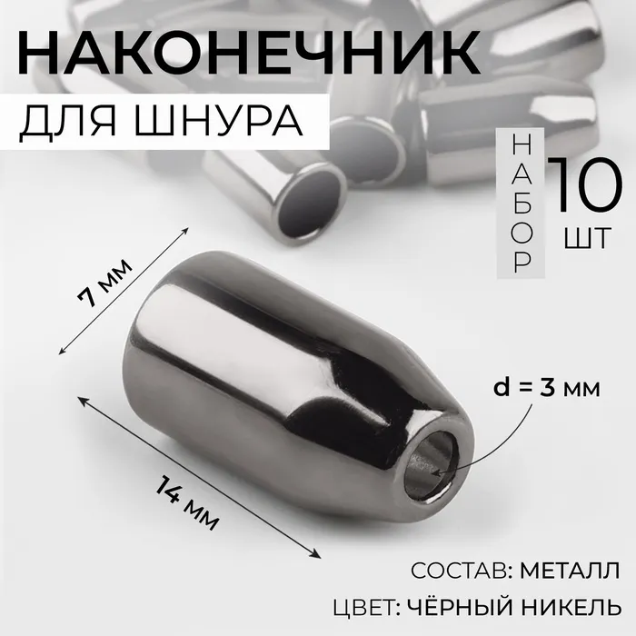 Наконечник для шнура, d=3 мм, 14×7 мм, 10 шт., цвет чёрный никель — Характеристики