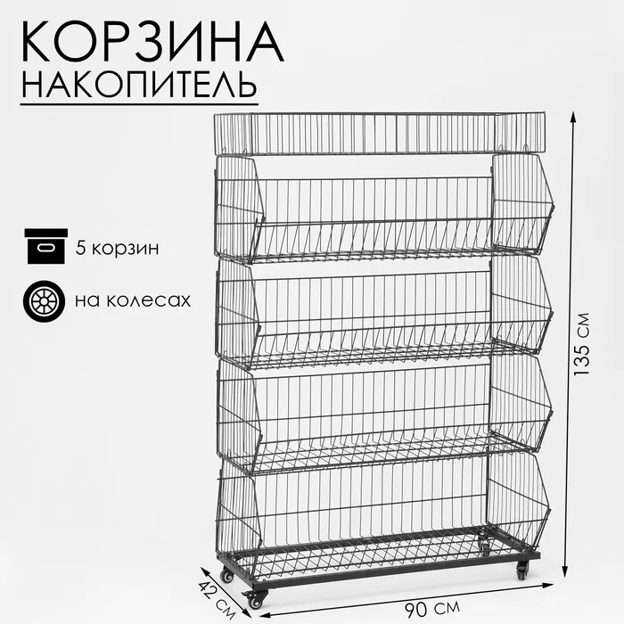 Этот накопитель на колесах с 5 корзинами и разделителями станет незаменимым помощником в организации пространства. Он идеально подойдет для хранения игрушек, одежды, документов и других мелких вещей. Размеры 90×42×135 см и черный цвет позволяют использовать его в любых интерьерах, обеспечивая функциональность и стиль.