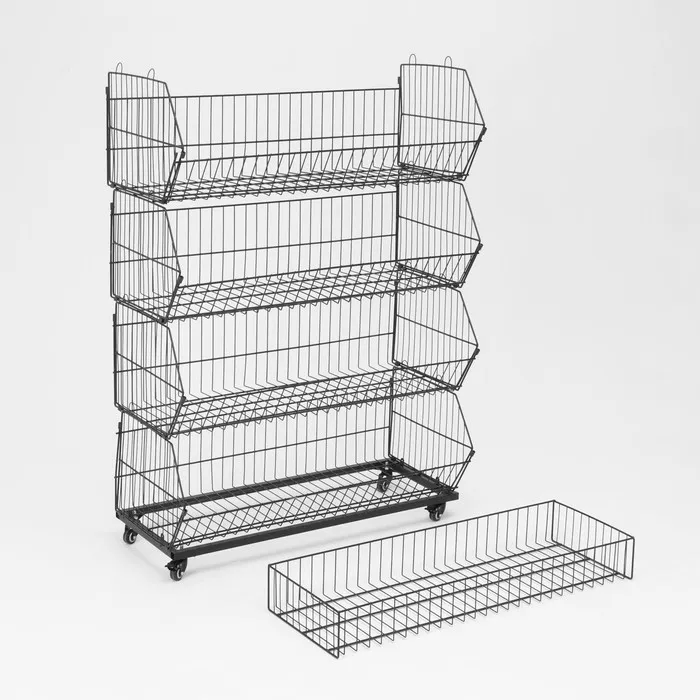 С этим накопителем на колесах вы сможете легко организовать хранение различных предметов, от одежды до бытовых вещей. Разделители в корзинах помогают поддерживать порядок и разделять вещи по категориям, а разборная конструкция делает его удобным в хранении, если не требуется постоянное использование. Черный цвет и современный дизайн придают изделию стильный и элегантный вид.