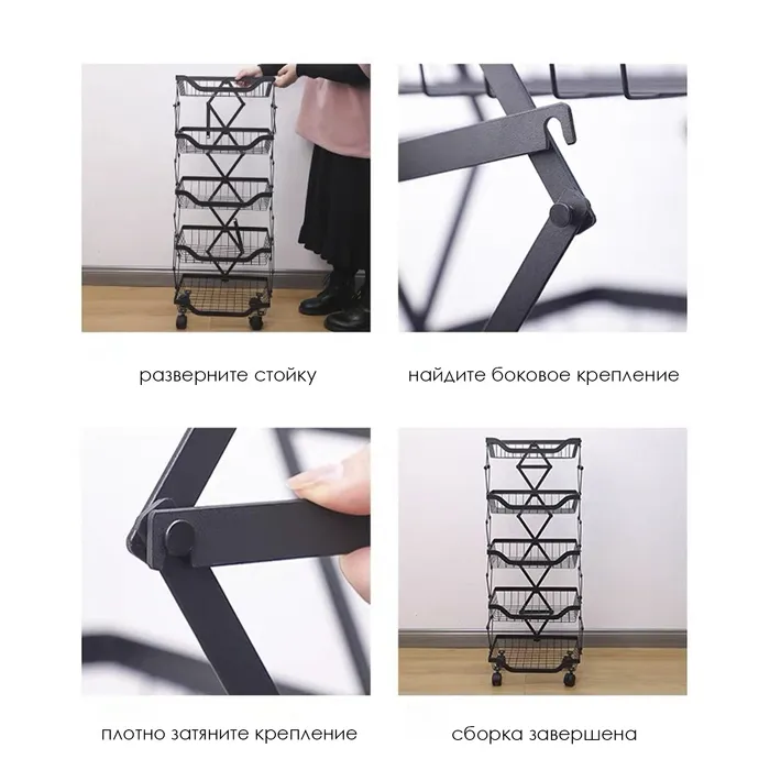 Накопитель складной на колесах с 5 полками — это отличное решение для хранения и организации, которое помогает создать порядок и оптимально использовать пространство, добавляя стиль и функциональность в любой интерьер.