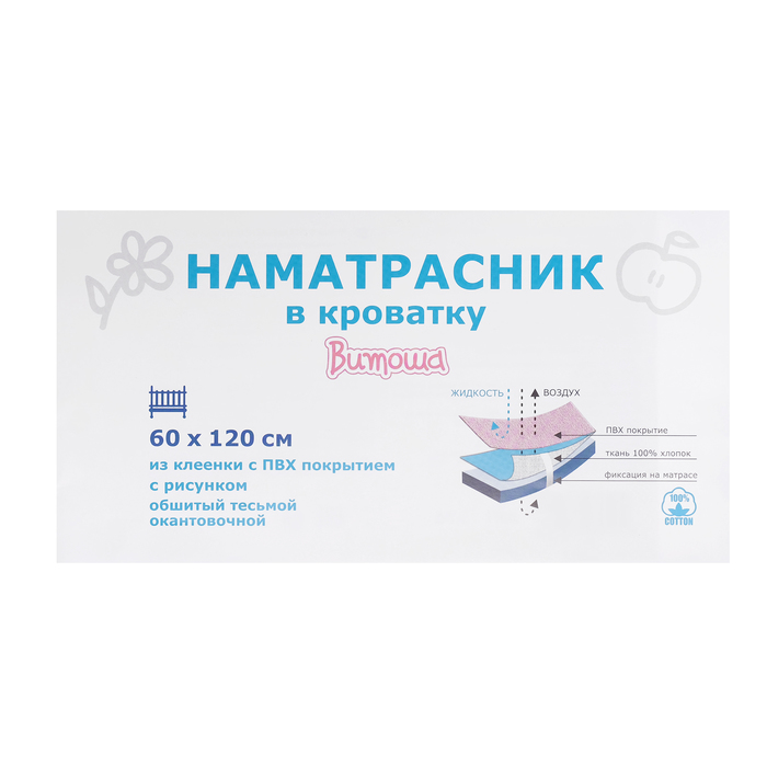 Наматрасник из клеёнки с ПВХ-покрытием, 60×120 см, в кроватку, МИКС — Характеристики