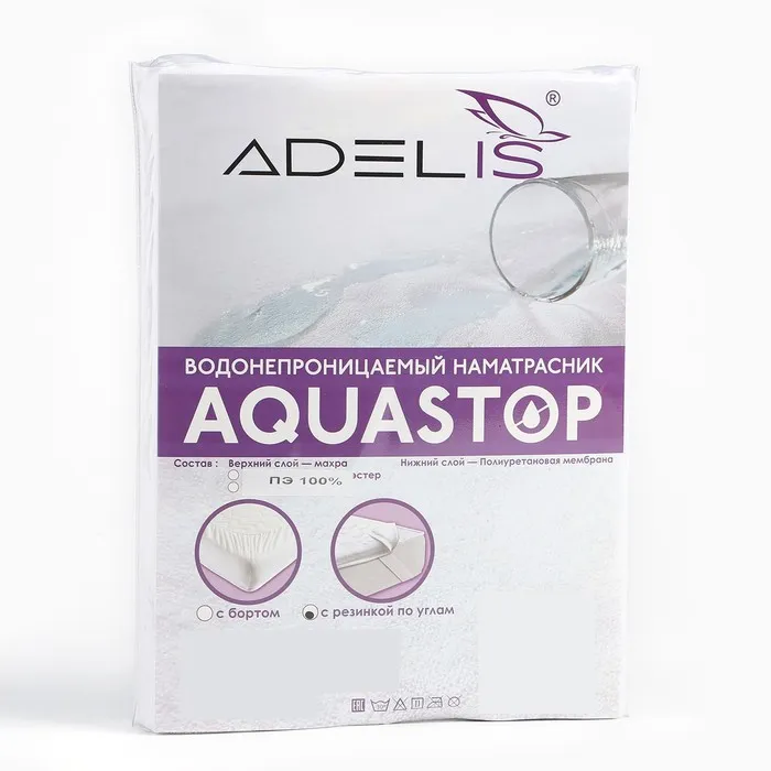 Наматрасник непромокаемый Комфорт 160х200см, с резинкой по углам, махра/мембрана, 100% полиэстер — Характеристики