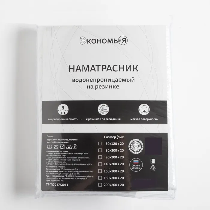 Наматрасник водонепроницаемый Экономь и Я на резинке 200*200 +20 см.мулетон,100% п/э — Характеристики