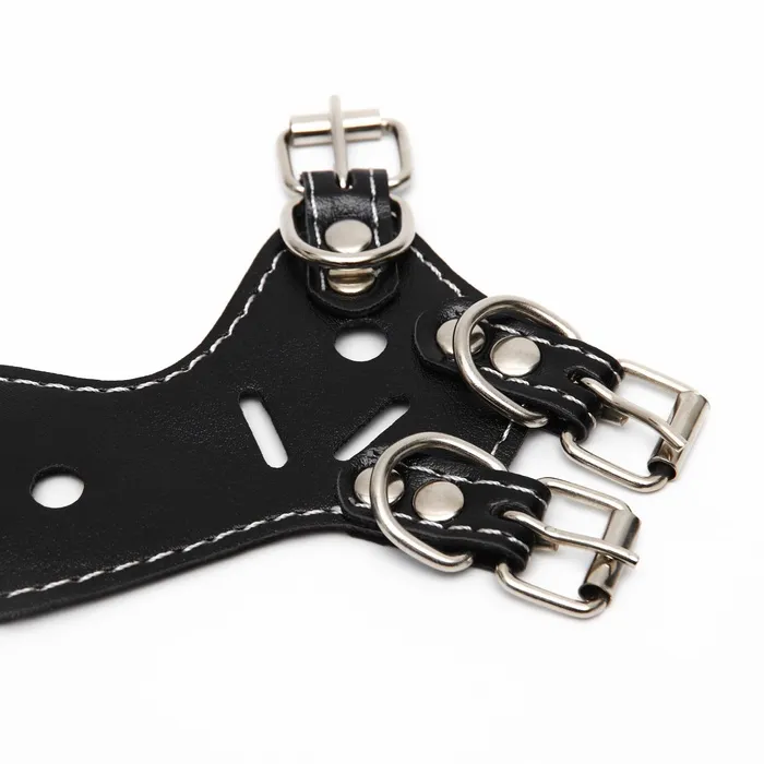 Намордник изготовлен из высококачественной прессованной кожи, что обеспечивает прочность и долговечность изделия. Этот материал также легко чистится и устойчив к износу.