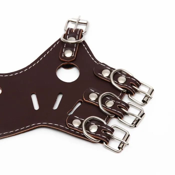 Намордник изготовлен из высококачественной прессованной кожи, что обеспечивает прочность и долговечность изделия. Этот материал также легко чистится и устойчив к износу.