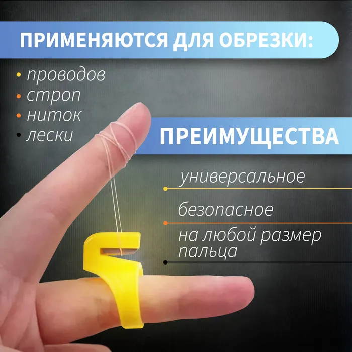 Минимум движений — максимум точности. Нож-напёрсток в виде кольца — это удобный инструмент для быстрой обрезки строп, нитей, лески и мягких проводов. Подойдёт для мастеров, рыболовов, электриков, упаковщиков и тех, кто ценит скорость и контроль в работе с мелкими материалами.