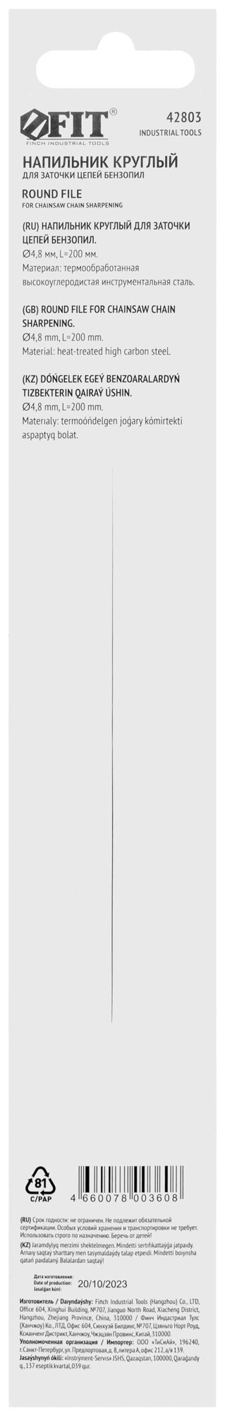 Выберите напильник FIT 4,8 х 200 мм, чтобы всегда поддерживать остроту и эффективность ваших цепей бензопил.