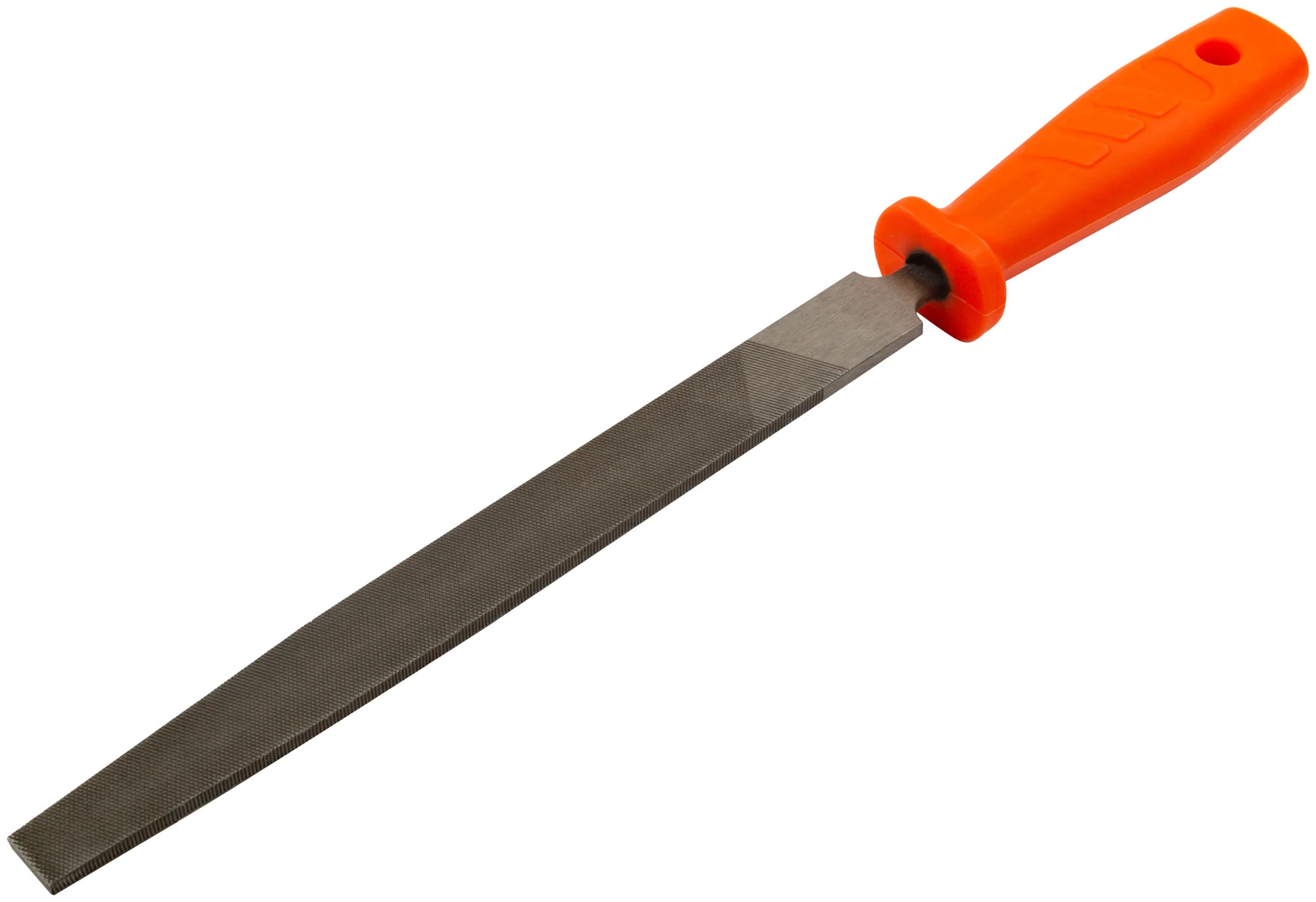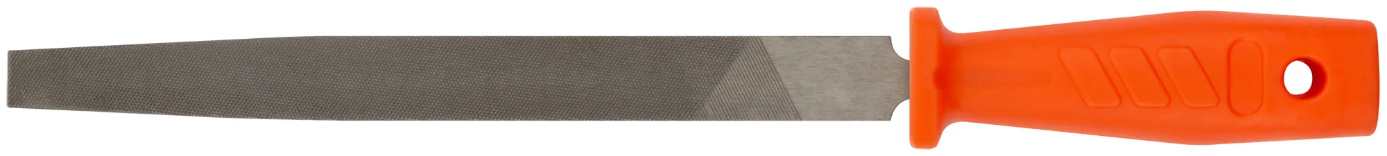 Напильник изготовлен из инструментальной стали, что гарантирует его долговечность и устойчивость к износу. Удобная пластиковая ручка обеспечивает комфортный хват, снижая усталость при длительной работе.