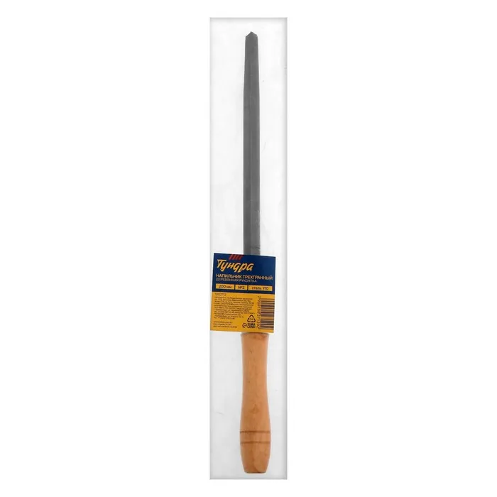 Напильник ТУНДРА, трехгранный, сталь У10, деревянная рукоятка, №2, 200 мм — Характеристики