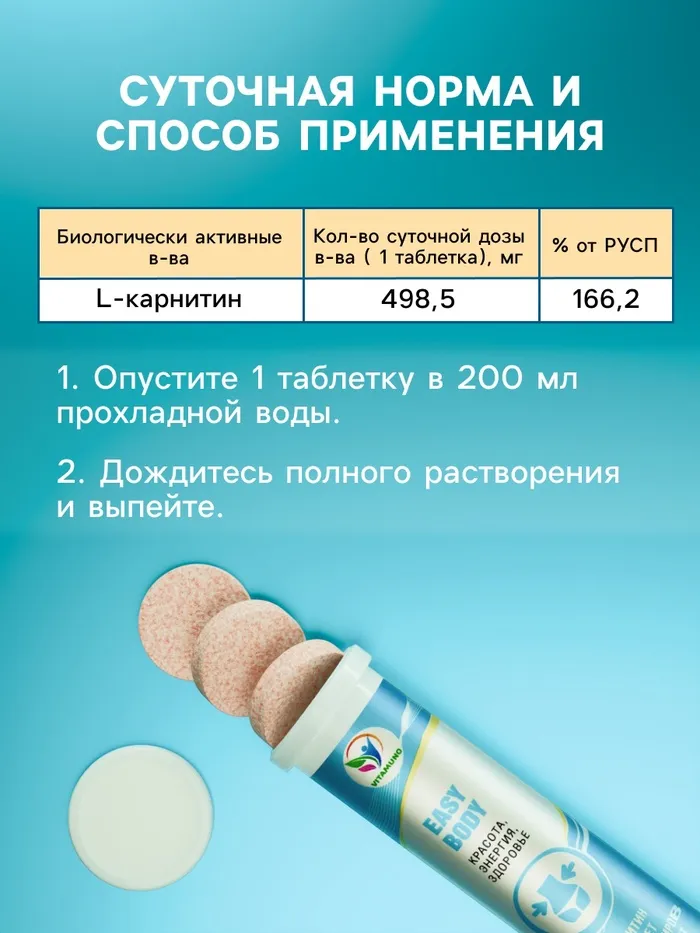Easy Body Vitamuno — это уникальный напиток, содержащий комплекс витаминов и минералов, необходимых для поддержания здоровья и энергии вашего тела. Каждая шипучая таблетка обеспечивает быстрое усвоение полезных веществ и насыщение организма витаминами.