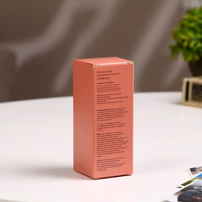 Наполнитель- это сменная жидкость для аромадиффузора, представляющая собой оригинальную ароматическую композицию в более простой упаковке и используется после опустошения основного флакона. Приобретённый в такой упаковке парфюм можно перелить в имеющийся флакон, предварительно его промыв, чтобы избежать искажения аромата. Наша жидкость для аромадиффузора изготовлена из безопасных и экологичных материалов, обеспечивая постоянное ощущение тонкого аромата, поэтому важно высокое качество продукта. Срок службы ароматического состава во флаконе составляет до трёх месяцев, в зависимости от условий использования и влажности в помещении.