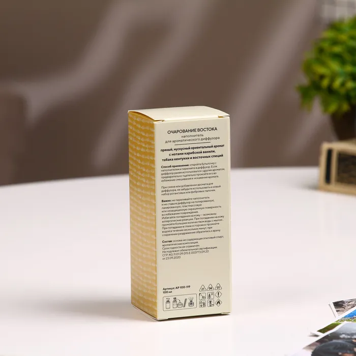 Создайте атмосферу восточной загадочности с ароматическим диффузором. Наполнитель для диффузора «Восточное очарование» 100 мл — это уникальная возможность окружить себя богатым и притягательным ароматом, который сочетает в себе нотки мускуса, ванили и табака, создавая гармоничную и уютную атмосферу в любом помещении.
