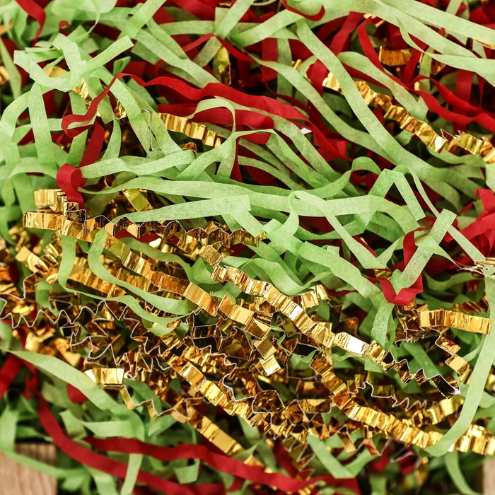 - Наполнитель идеально подходит для упаковки новогодних подарков, свадебных сюрпризов, корпоративных презентов и других торжественных мероприятий.
