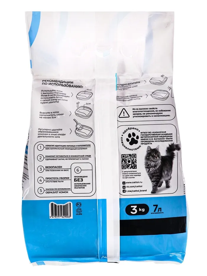 Наполнитель минеральный комкующийся Cattoi Comfort 3 кг,пластиковый пакет — Характеристики
