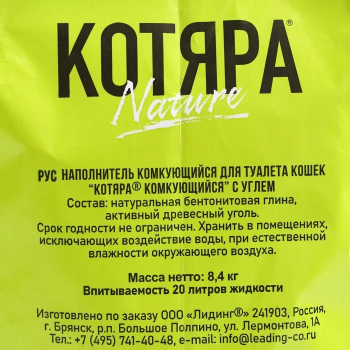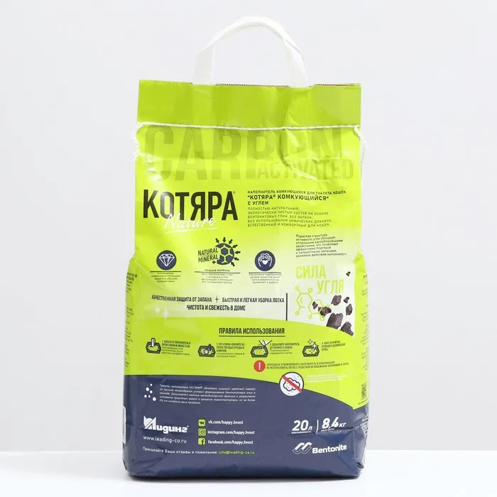 Таким образом, минеральный комкующийся наполнитель для кошек представляет собой надежный и удобный выбор для обеспечения комфортных условий содержания животного. Его использование позволяет поддерживать чистоту в доме и обеспечивать здоровье и комфорт вашего питомца. Комкующийся наполнитель КОТЯРА® с активным углем обладает отличными адсорбирующими свойствами. Благодаря пористой структуре активного угля эффективно борется с неприятными запахами, усиливая действие бентонитовых глин. Специально подобранный размер гранул, не ранит лапки животного и не прилипает к шерсти.