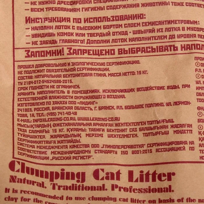 Наполнитель минеральный комкующийся No Name, 15 кг — Характеристики