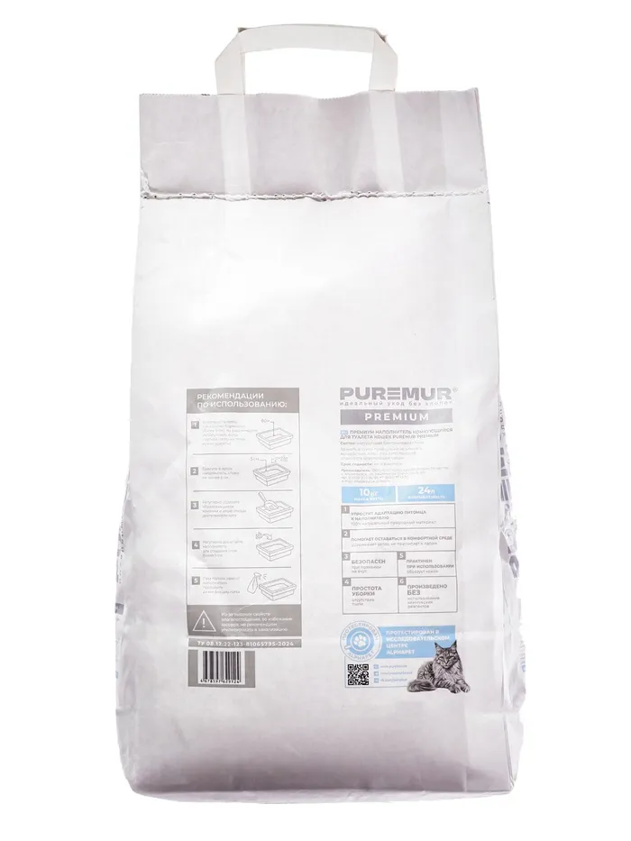 Наполнитель минеральный комкующийся PureMur Premium 10 кг,бумажный пакет — Характеристики