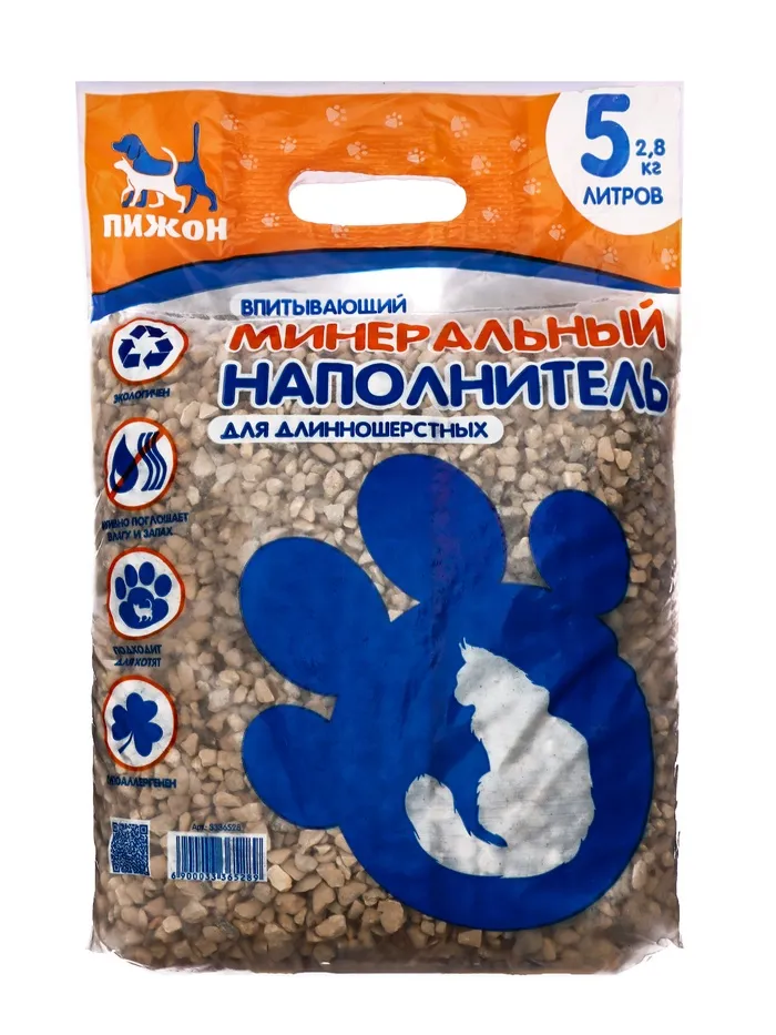 Наполнитель минеральный впитывающий "Пижон" - это природный сорбент (опока), полученный без какой-либо химической обработки. Крупные гранулы подобраны специально для длинношерстных пород кошек.