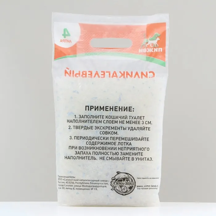 Безопасность для здоровья. Силикагелевый наполнитель изготовлен из природных материалов, что делает его безопасным для здоровья вашего питомца. Он не содержит пыли и химических добавок, что особенно важно для кошек с аллергиями или чувствительными дыхательными путями.