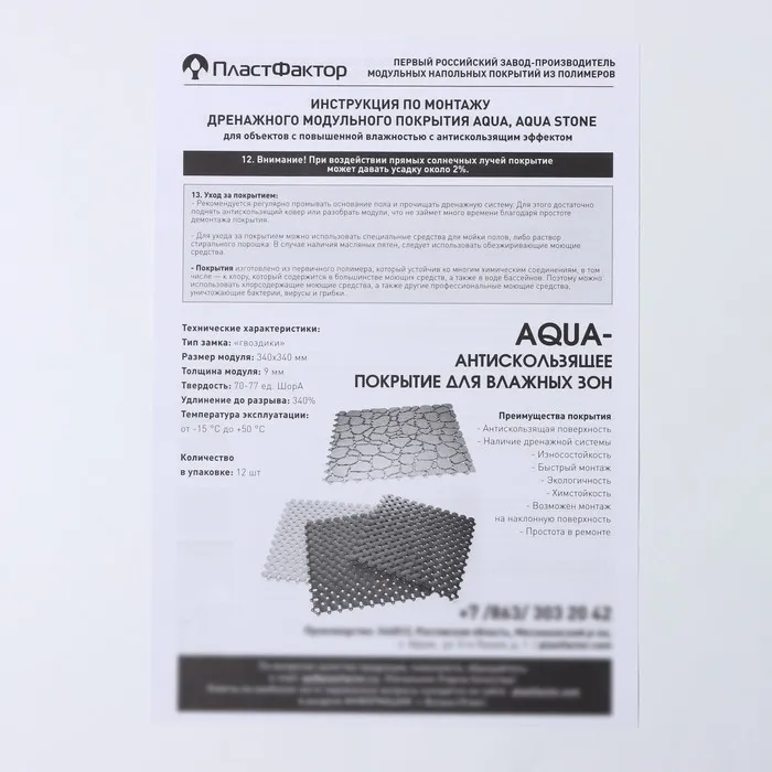Напольное модульное покрытие AQUA STONE, 34×34 см, 6 шт в упаковке, синий — Характеристики
