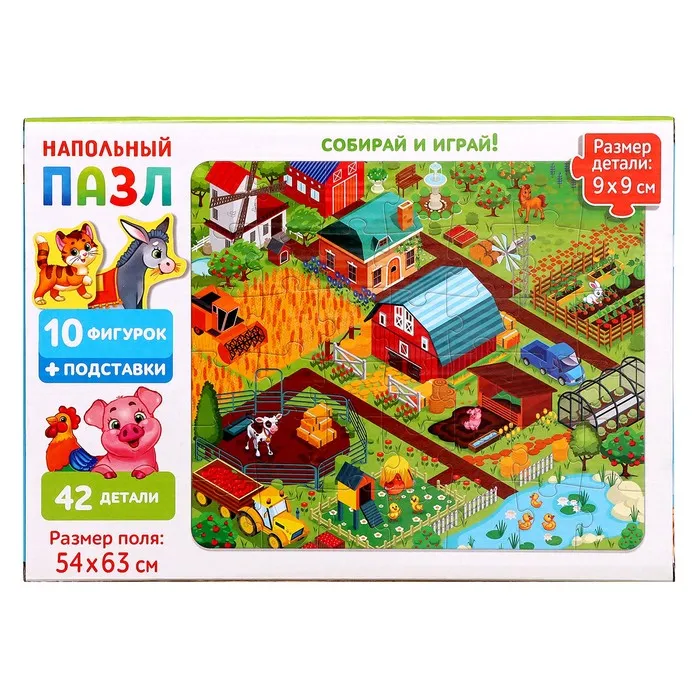 Напольный пазл с фигурками «Моя ферма», набор, 10 фигурок, 42 детали — Характеристики