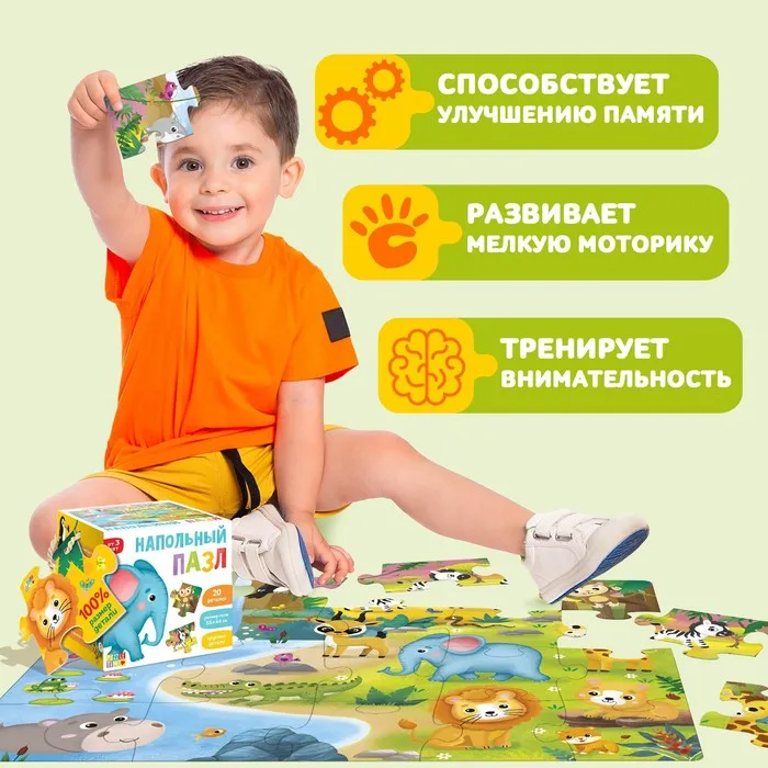 Напольный пазл «Такие разные зверята», 20 крупных деталей — Характеристики