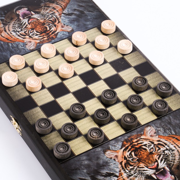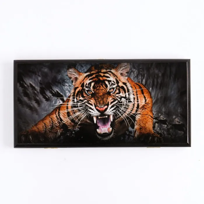 Нарды деревянные большие, настольная игра "Оскал тигра", 40 x 40 см, с шашками — Характеристики