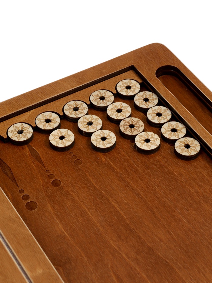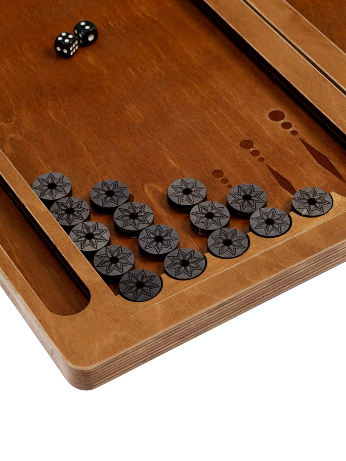 - Приятные тактильные ощущения: гладкая поверхность и аккуратная обработка древесины создают ощущение качественной ручной работы, а фишки легко скользят по полю.