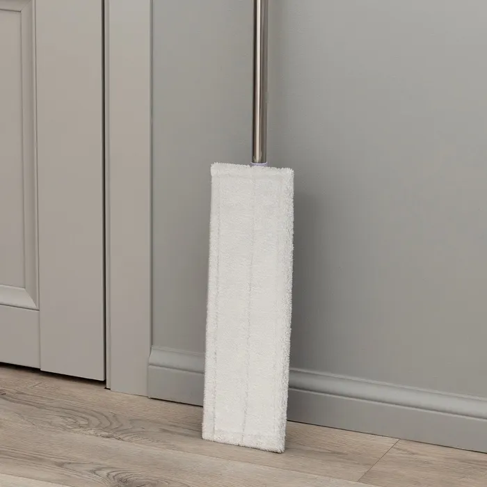 Насадка из микрофибры отлично подходит для мытья всех видов напольных покрытий: линолеума, ламината, паркета, кафельной плитки, мрамора. Она не царапает поверхность и отлично впитывает воду.