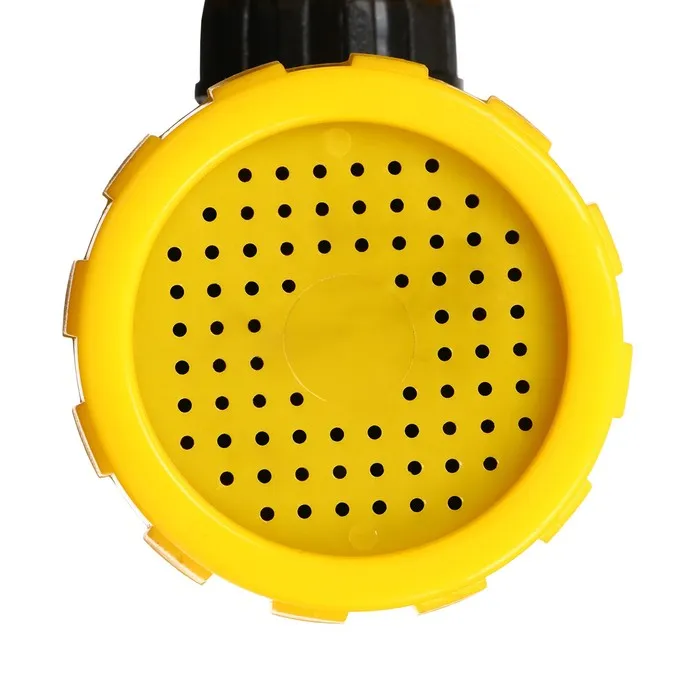 напором можно управлять при помощи регулировочного винта на корпусе: выбирайте интенсивность полива от лёгкого до сильного;лейка по-настоящему универсальна и подходит для шлангов с внутренним диаметром от 15 до 20 мм; широкая сетка обеспечивает большую площадь полива; оригинальная рукоятка облегчает работу с насадкой. Изделие чрезвычайно просто в применении. Насадка состоит из: