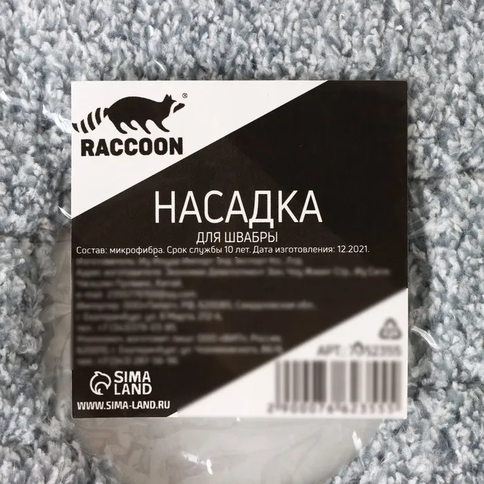 Насадка для швабры Raccoon, с вырезом, микрофибра, прямоугольная, 30×14.5 см, серая — Характеристики