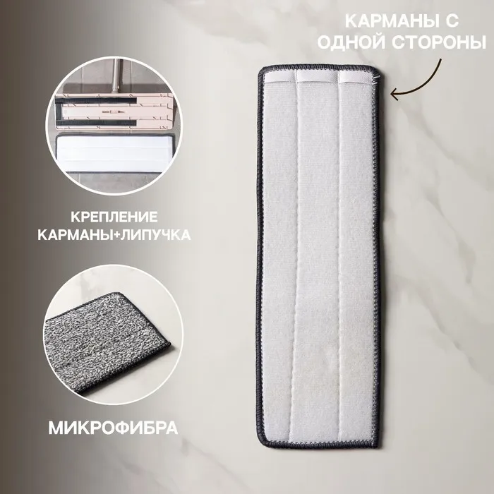 Насадка для швабры с отжимом Доляна, карманы с одной стороны, микрофибра, 34.5×11 см — Характеристики