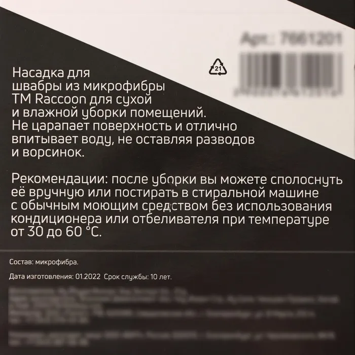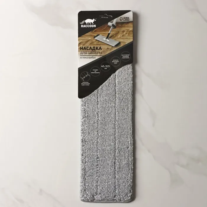 Насадка для швабры с отжимом и алюминиевой платформой Raccoon, карманы с 2-х сторон, микрофибра 42×12.5 см — Характеристики